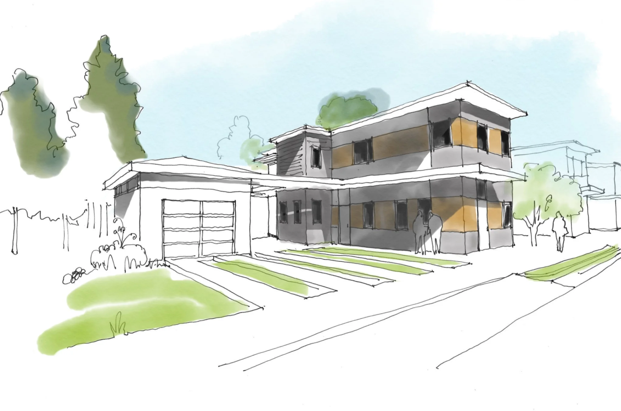 I’ve been working with Szostak Design on some new renderings of potential lot layouts and units on Inara Court. Here is a rendering of our roughly 1,800 square foot base model (2 bedrooms) with a one-car garage. Its shown on Lot 1, which is located on the corner of Fidelity Street and Inara Court. We’ll post some info about our different model types soon with floor plans and some preliminary options. We will start marketing units in April, prior to our April 22nd open house. Feel free to contact me if you have questions!